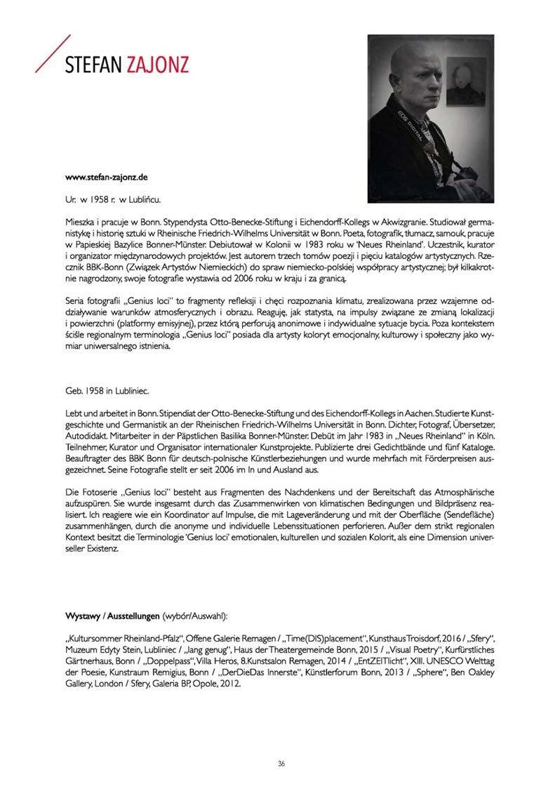 Wystawa Genius Loci w Galerii PRZESTRZEŃ SZTUK UNIWERSUTETU PRZYRODNICZO-HUMANISTYCZNEGO w SIEDLCACH to pokaz prac 13 artystów z Polski i Niemiec, dla których terenem eksploracji twórczej stał się fenomen miejsca i jego wpływ na kształt dzieła. Dla każdego z twórców wyjątkowość bycia „tu i teraz” w jakiś sposób zakotwiczona jest w tym, co w danym miejscu było przedtem i co jednocześnie definiuje nie tylko samą przestrzeń, ale także twórcę działającego w niej. Prace pokazane na wystawie obrazują nieustający dialog między artystą a tym, co wokół, dialog między dziełem a miejscem, w którym powstaje.