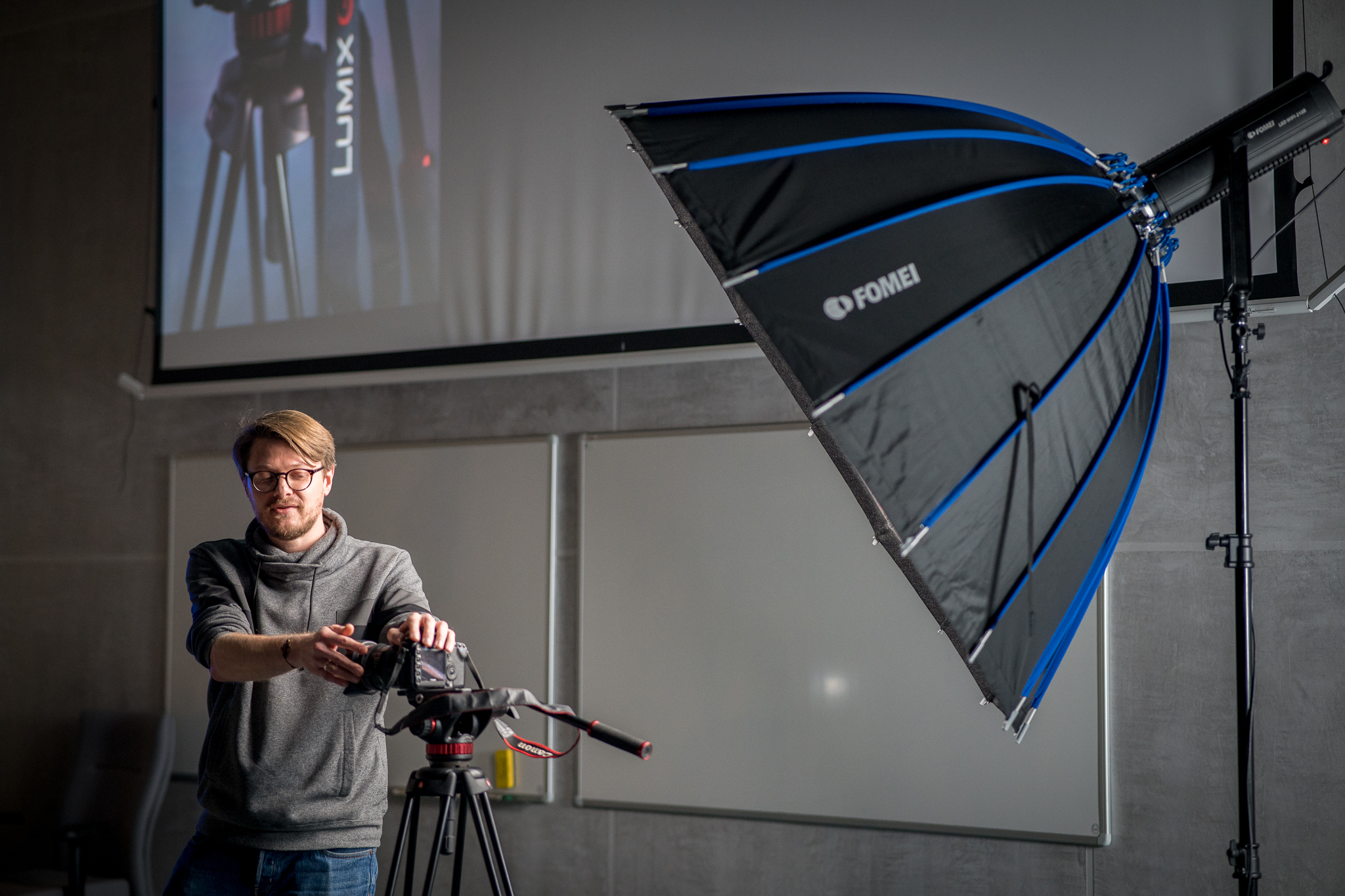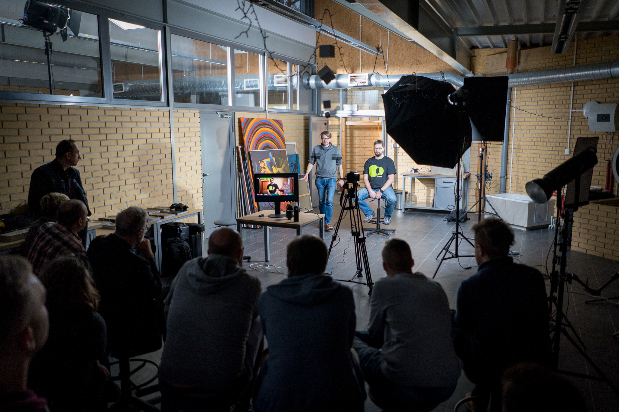 Po takim rozpoczęciu dnia można było spokojnie udać się na wykłady. Michał Przybylski z Fomei uchylił tajemnice filmowania dla niefilmujących fotografów, o grafice 3D opowiedziała Klaudyna Drabio, Jarosław Grudziński w inspirujący sposób opowiadał o kompozycji w fotografii. Aga Król oraz Marek Zubik poprowadzili panel o fotografii reportażowej. W trakcie wykładów odbywały się również warsztaty z oświetlenia filmowego. To była unikalna okazja do zapoznania się z technicznymi aspektami filmowania, a dokładniej oświetlenia. Dzięki olbrzymiej wiedzy prowadzących, ich zaangażowaniu i profesjonalizmowi wszystkie wydarzenia tego dnia inspirowały, prowokowały dyskusje. Niewątpliwie były inspiracją do działań dnia następnego.