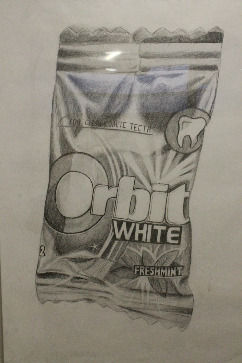 Ciąg dalszy imitacji nastąpił w następnej pracy, gdzie wybieraliśmy jeden przedmiot, który później hiperrealistycznie powiększaliśmy. Widzieliście kiedyś taką dużą paczkę gum do żucia?