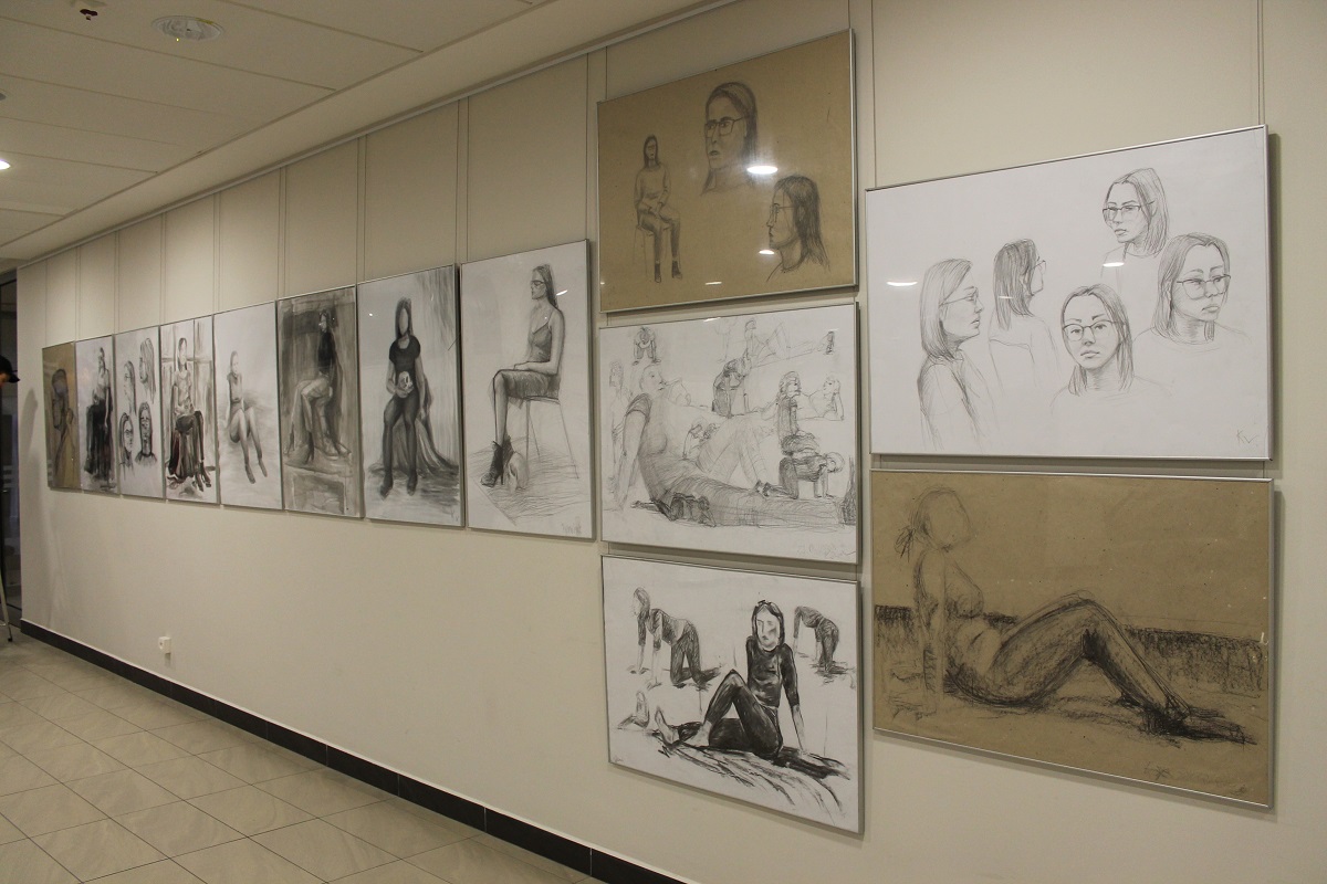 Jako studenci drugiego roku kierunku Edukacja artystyczna w zakresie sztuk plastycznych, chcielibyśmy zaprezentować nasze prace z zajęć rysunku. W III semestrze rysowaliśmy postać ludzką - modela z natury. Wpierw poznawaliśmy zasady teoretyczne, by potem przejść do praktyki. I tak oto, podjęliśmy się takich tematów, jak na przykład kontrapost, postać siedząca, postać leżąca, czy chociażby mieliśmy za zadanie narysować kilka szkiców postaci na jednej kartce, co w efekcie końcowym tworzyło niezwykłą i unikatową historię. Ważna jest również różnorodność technik. Mogliśmy posługiwać się węglem, ołówkiem, czy temperą. Ta swoboda ułatwiła nam wyrazić się twórczo. Dla niektórych zajęcia z modelem były czymś nowym, więc nie było łatwo, zwłaszcza na początku. Lecz, gdy brakowało wiary w siebie, dzięki wytrwałości efekt końcowy wychodził całkiem niezły. Wystarczyło tylko dużo ćwiczyć, mieć chęci, a przede wszystkim – uzbroić się w cierpliwość. Bo często coś nie wychodziło, ale dzięki pracy i systematycznym ćwiczeniom – było warto. Szczególnie dla tej różnorodności, którą widać w prezentowanych pracach. Bo każdy z nas jest inny i równie oryginalny, dlatego cieszymy się, że mamy możliwość rozwijania się zgodnie z naszymi predyspozycjami i zainteresowaniami.